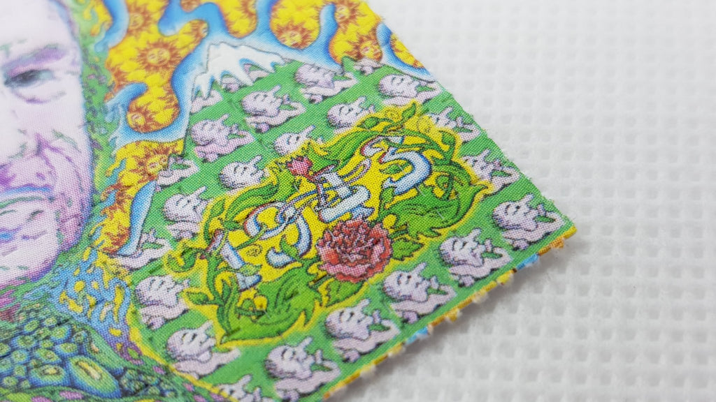 Our designs are printed with a plant based food grade ink, printed on absorbent blotting paper with brightly colored perforated psychedelic themed artwork.
