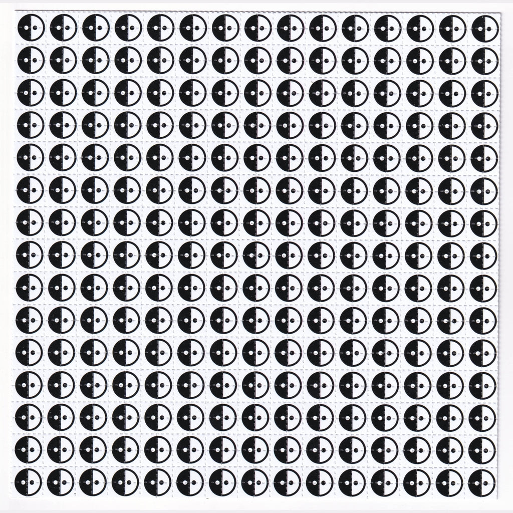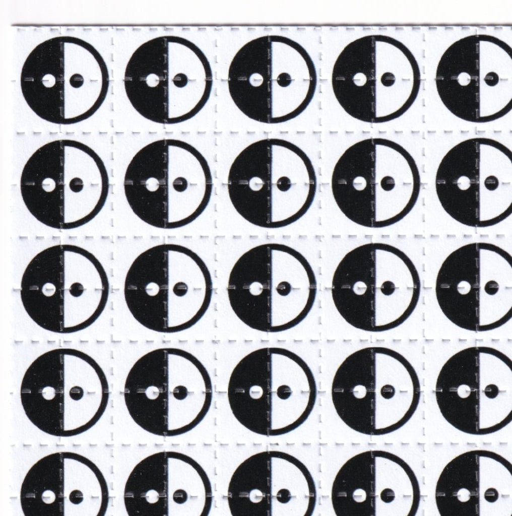 A black and white yin & yang style symbol design with the symbol split over each 4 tabs of this sheet