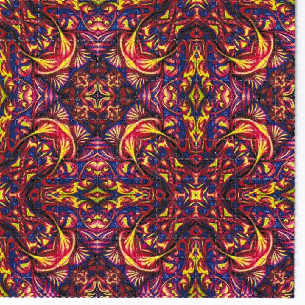 Our designs are printed with a plant based food grade ink, printed on absorbent blotting paper with brightly colored perforated psychedelic artwork.