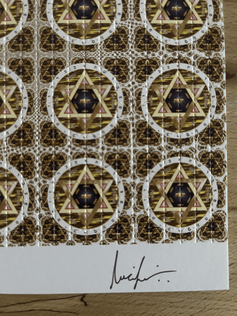 This sheets is sheet from a run of 100 prints produced in the early 2000's featuring artwork by Lucifer the sheet is known as David’s Star and has been signed by the artist.