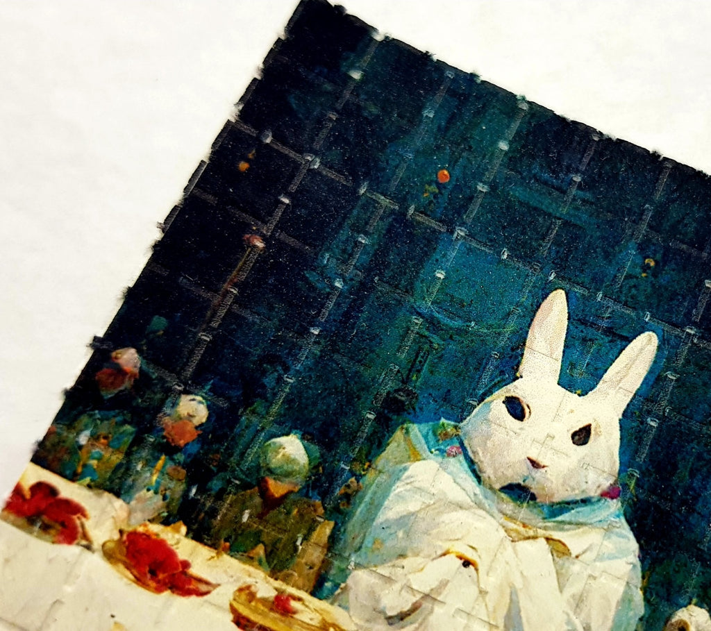 White Rabbit Supper Blotter Art Print - 100 Tab Blotter Art Sheet.