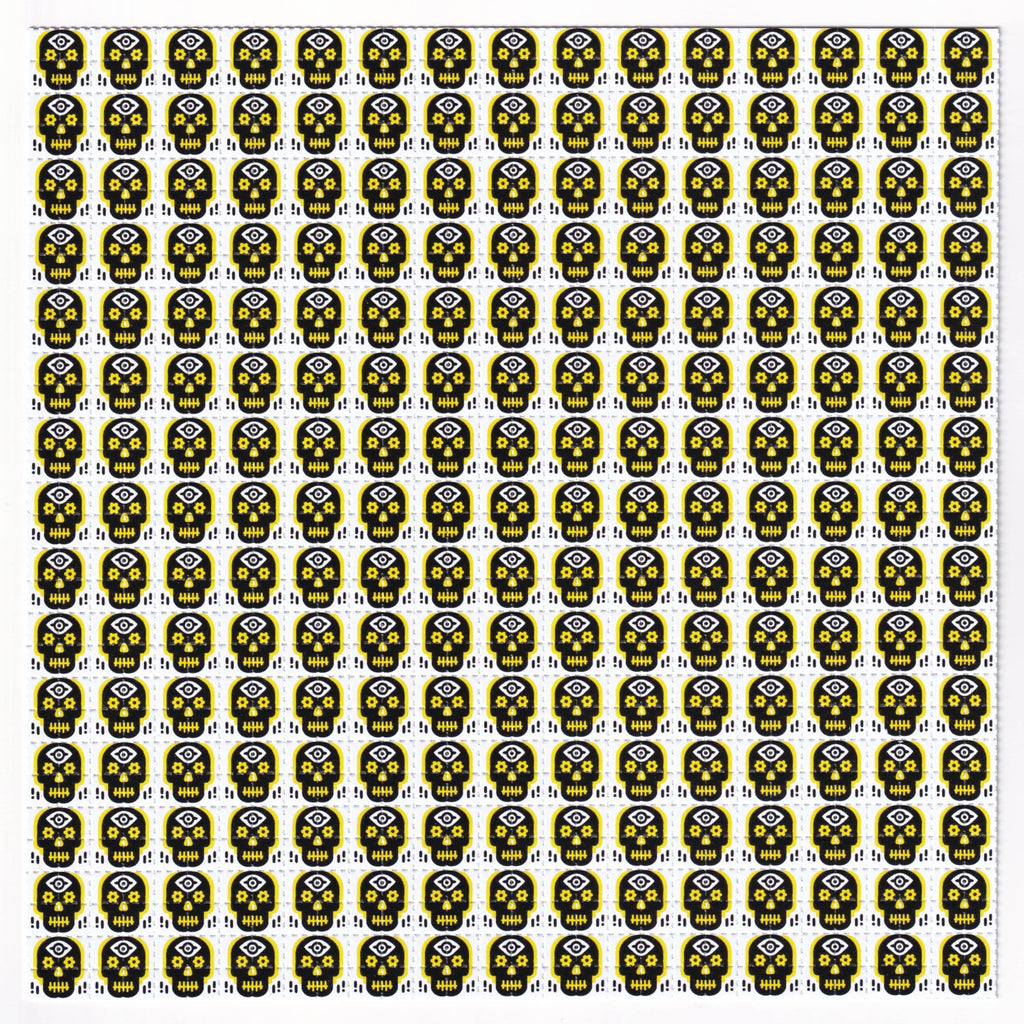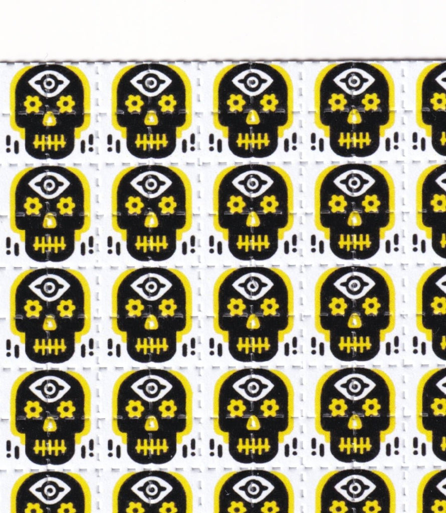 Skull Yellow Blotter Art Print - 900 Tab Blotter Art Sheet.