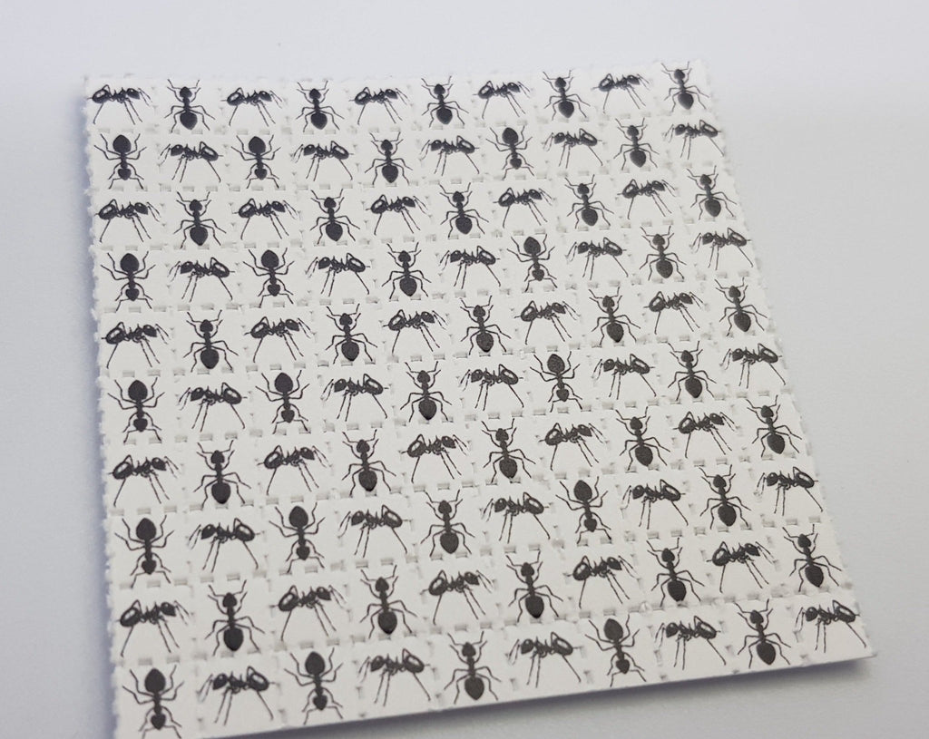 A simple blotter art sheet with a white black ground and a variety of different Ants