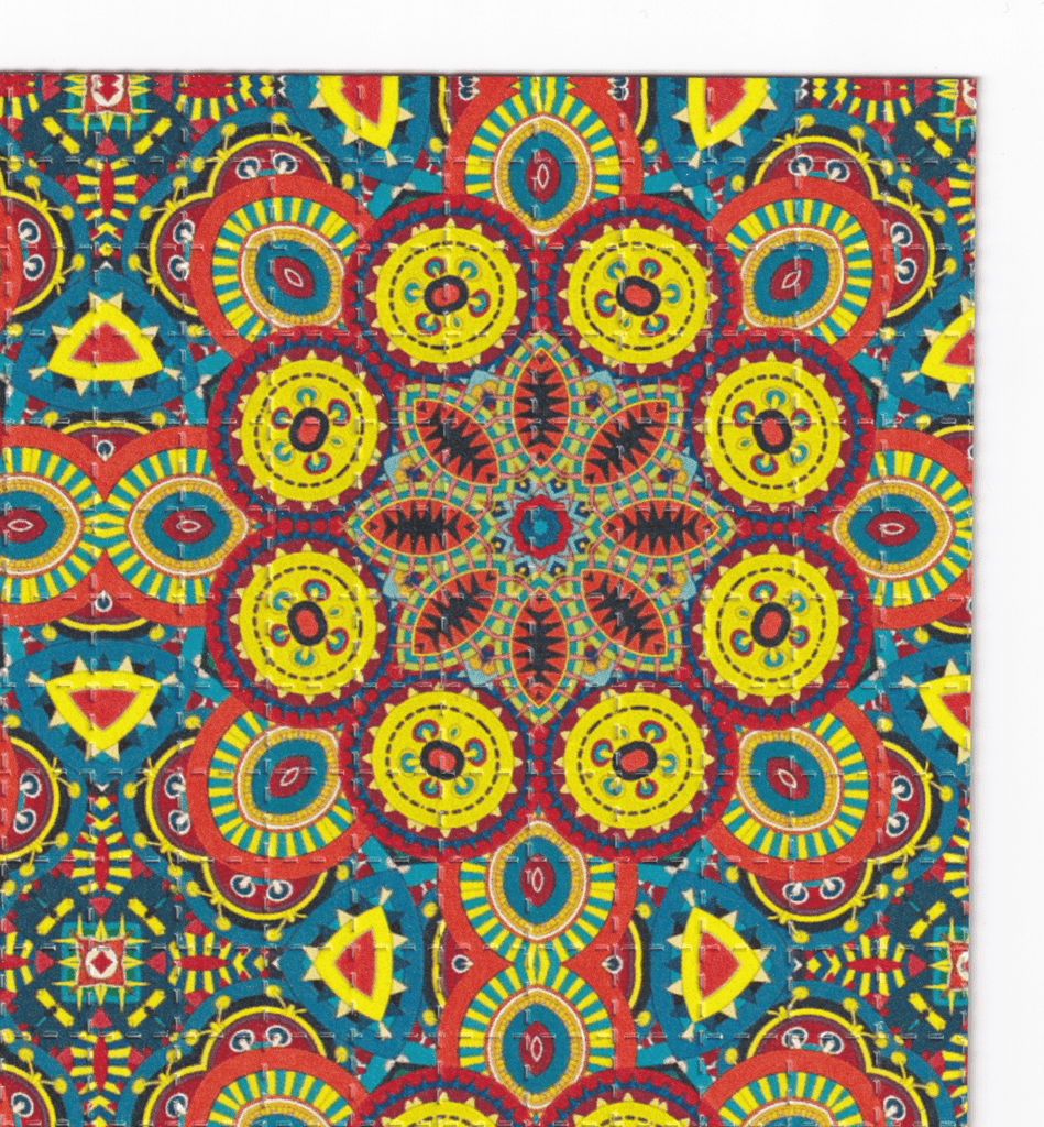 Our designs are printed with a plant based food grade ink, printed on absorbent blotting paper with brightly colored perforated psychedelic artwork.