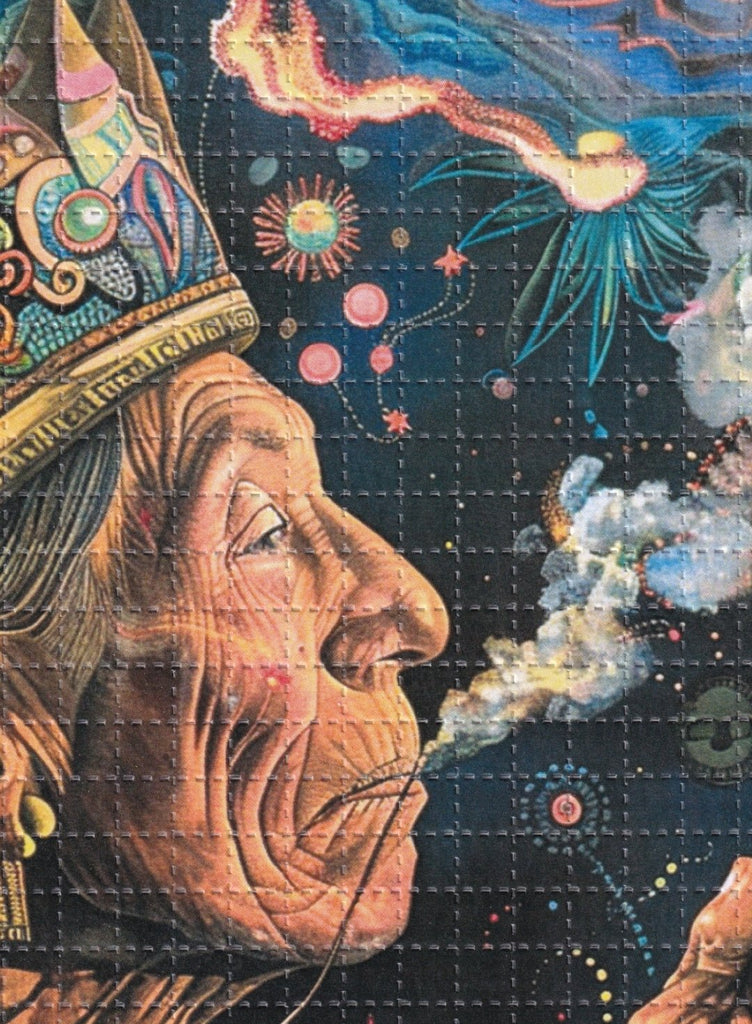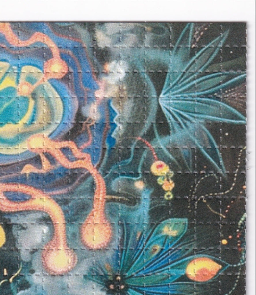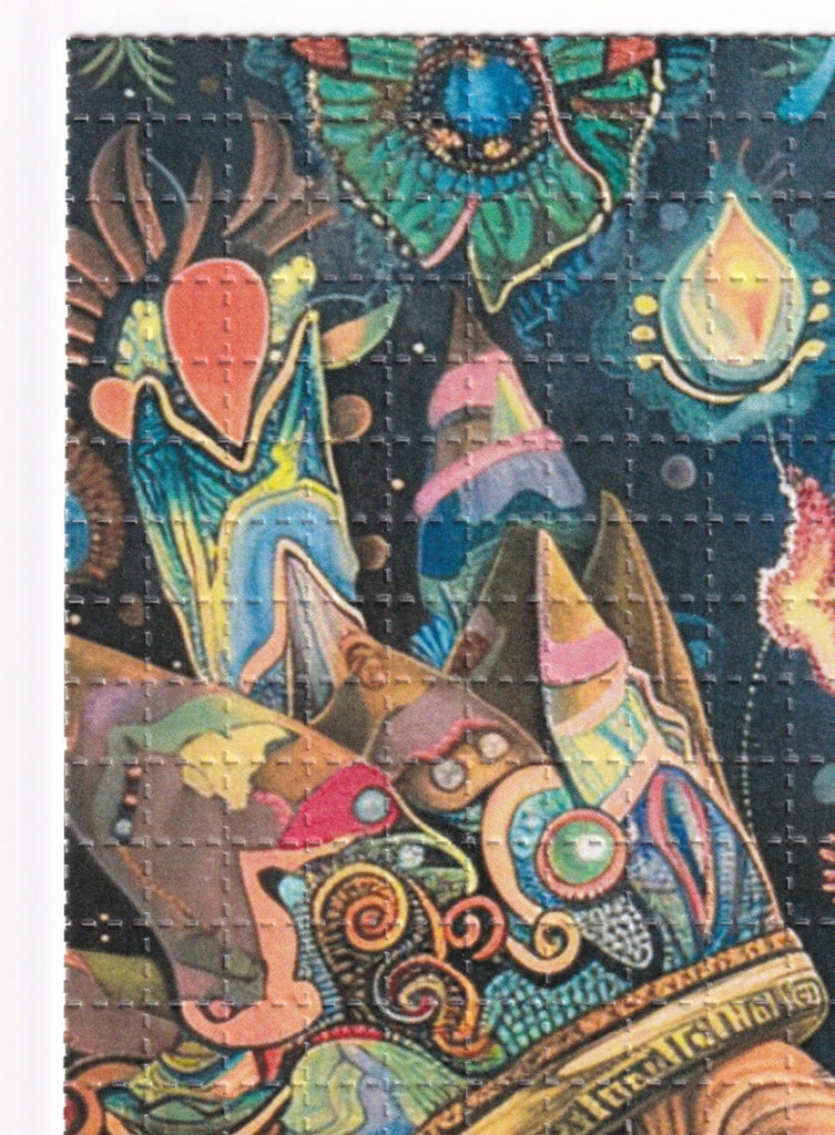 Our designs are printed with a plant based food grade ink, printed on absorbent blotting paper with brightly colored perforated psychedelic artwork.
