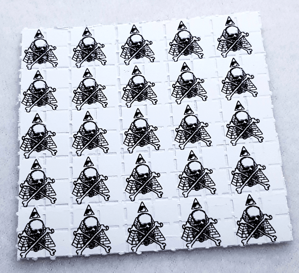 This skull was first printed on an Anubis sheet that was circulated in the US.