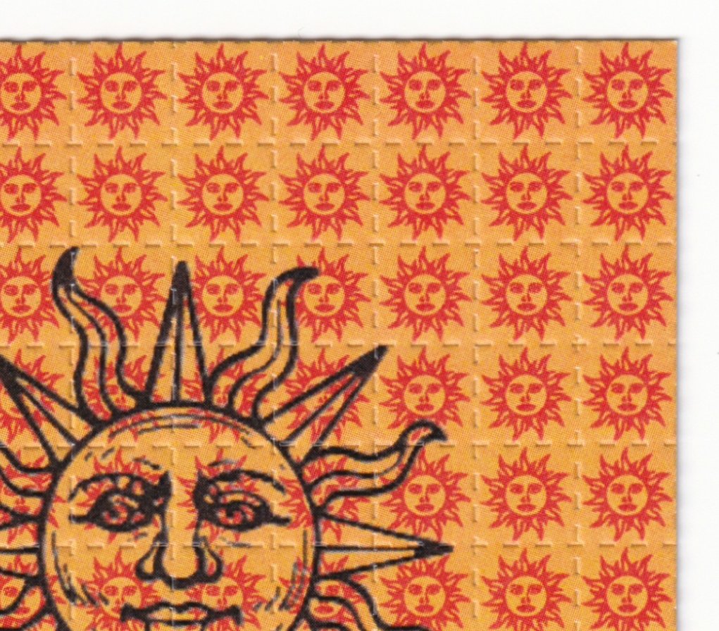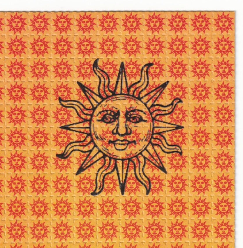 Maybe one of the most well known blotter art designs of all time, Orange Sunshine.