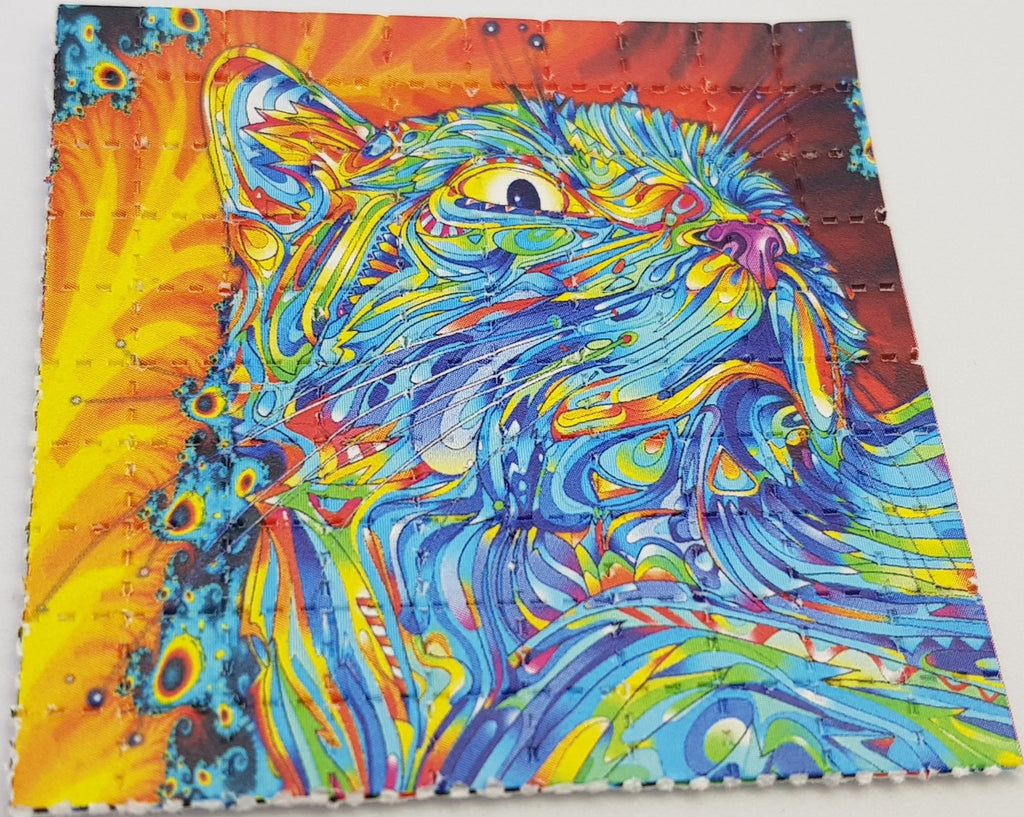 Our designs are printed with a plant based food grade ink, printed on absorbent blotting paper with brightly colored perforated psychedelic themed artwork.