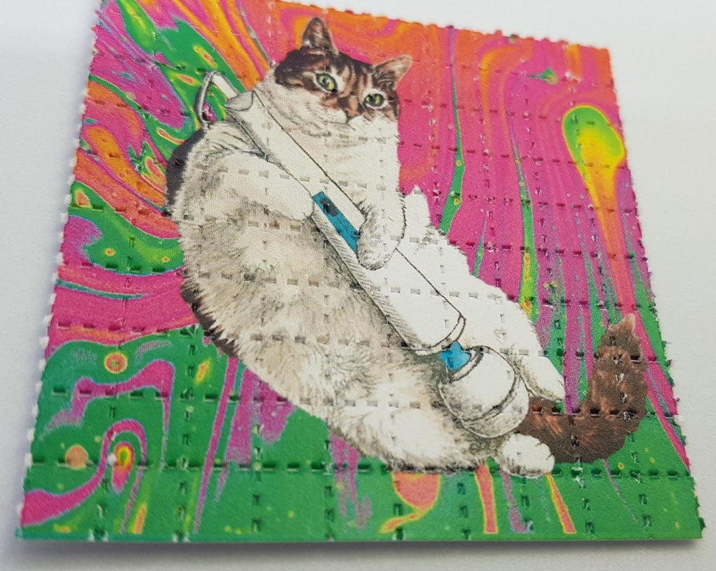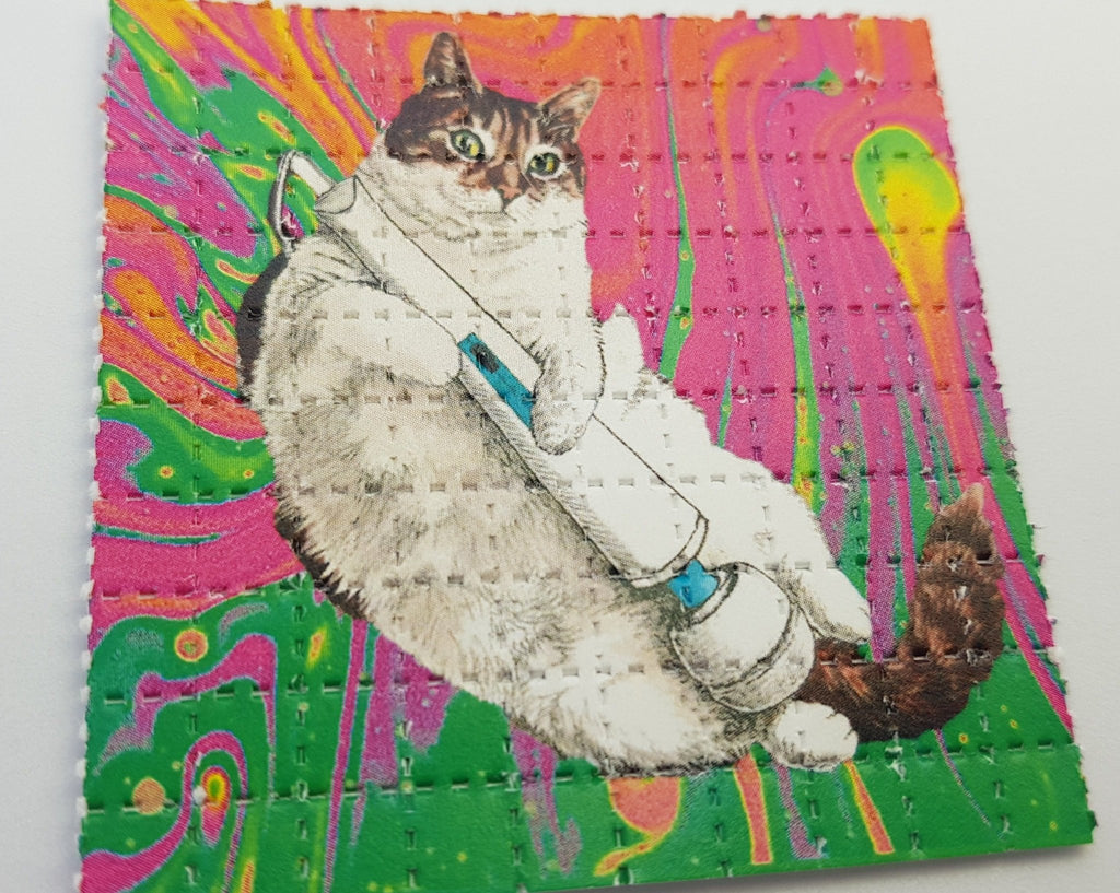 Our designs are printed with a plant based food grade ink, printed on absorbent blotting paper with brightly colored perforated psychedelic artwork.