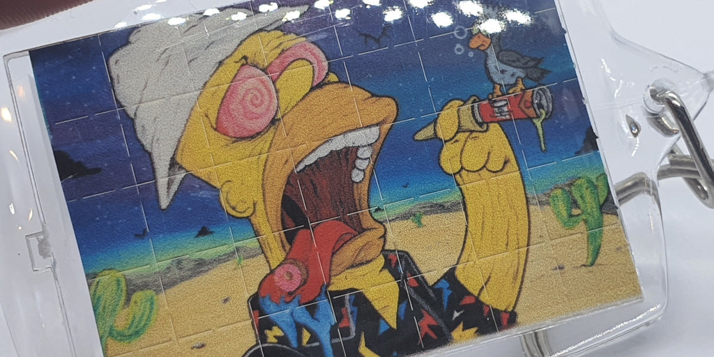 Our blotter art keyrings feature a range of amazing psychedelic artwork.