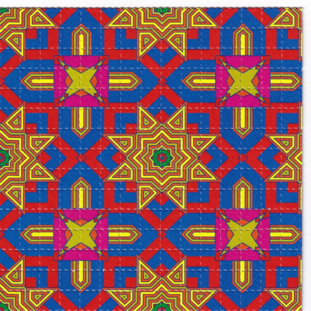 Our designs are printed with a plant based food grade ink, printed on absorbent blotting paper with brightly colored perforated psychedelic artwork.