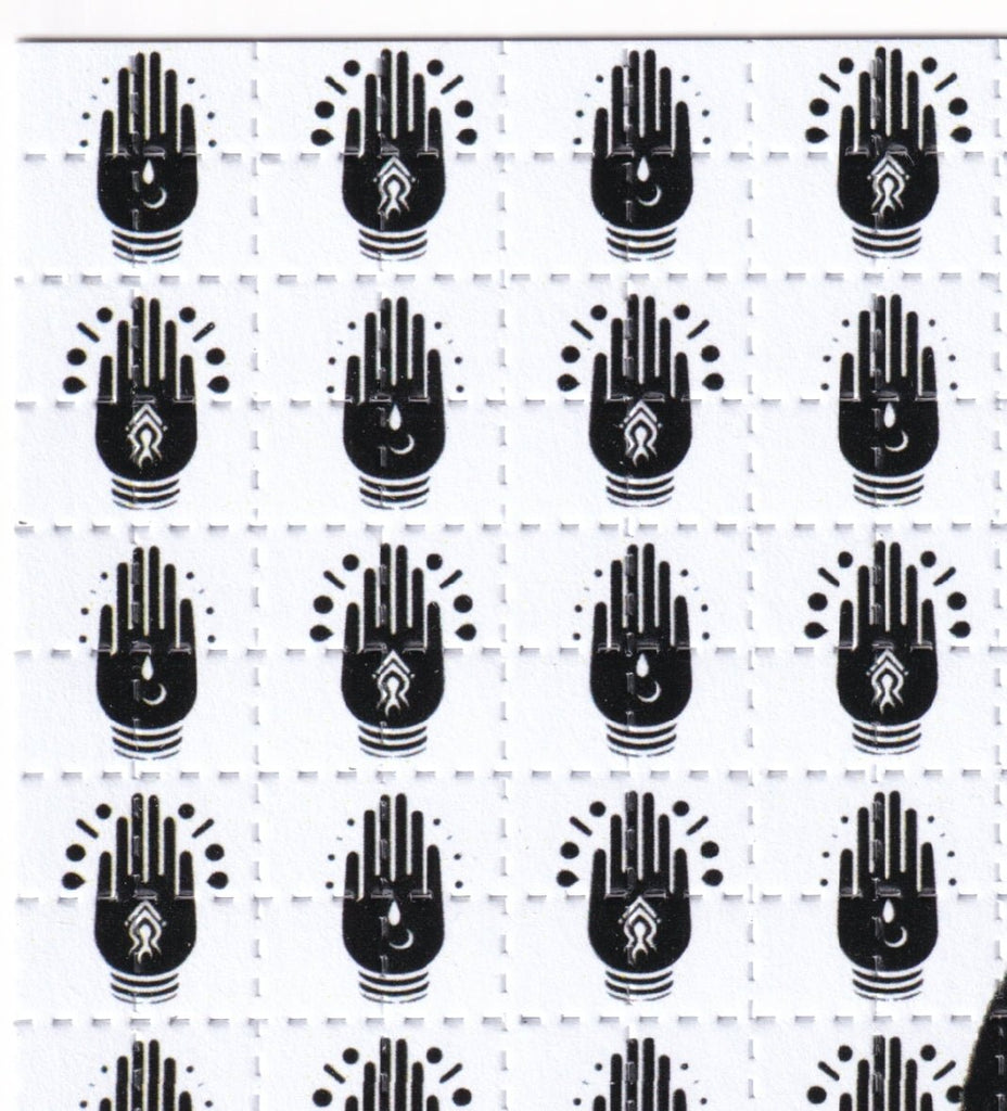 Our designs are printed with a plant based food grade ink, printed on absorbent blotting paper with brightly colored perforated psychedelic artwork.