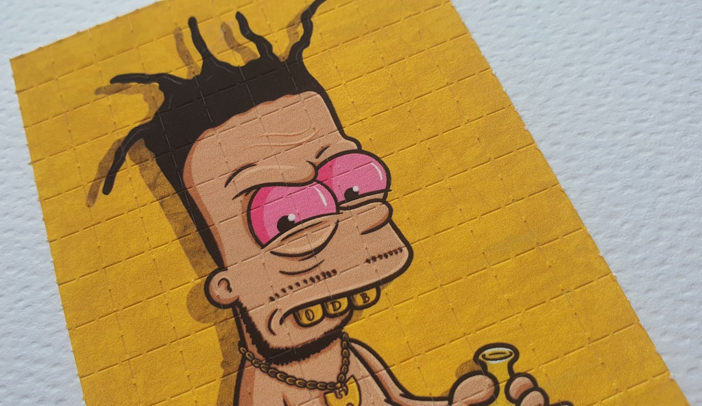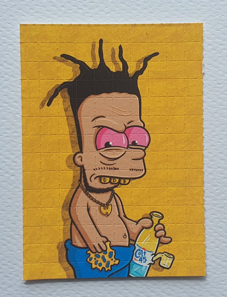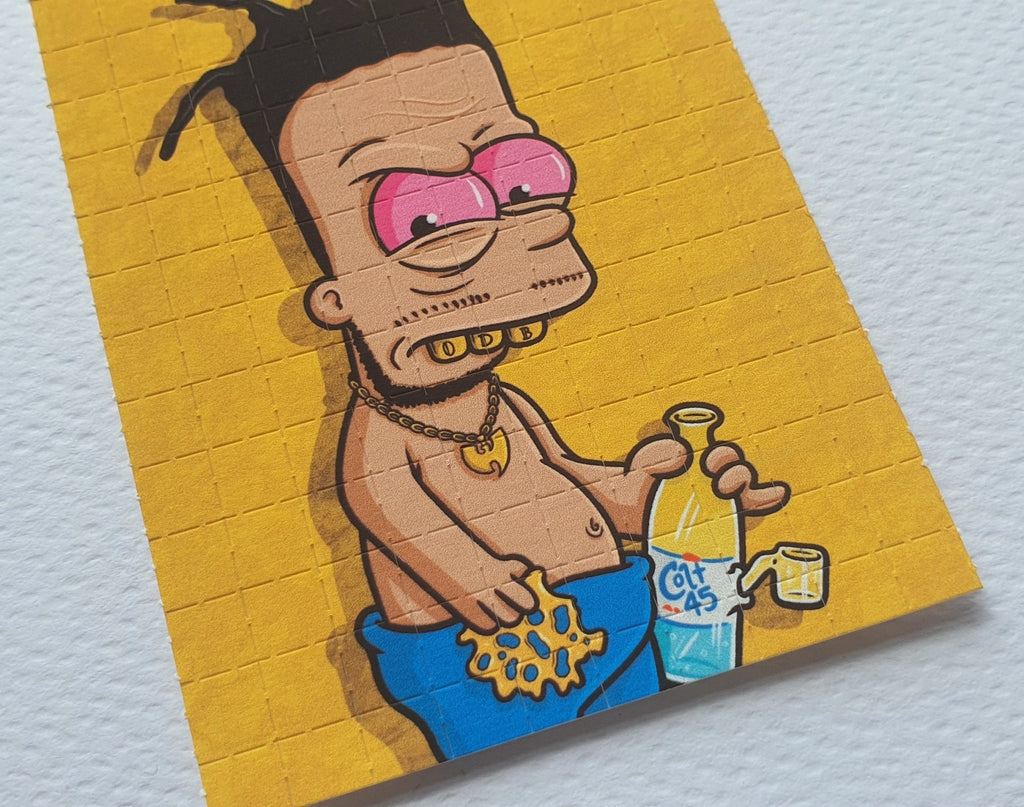 This sheet was produced in 2021 by Russ Holmes, the print features a Bart Simpson design an original artwork by Russ (also knows as Overdosed Art).